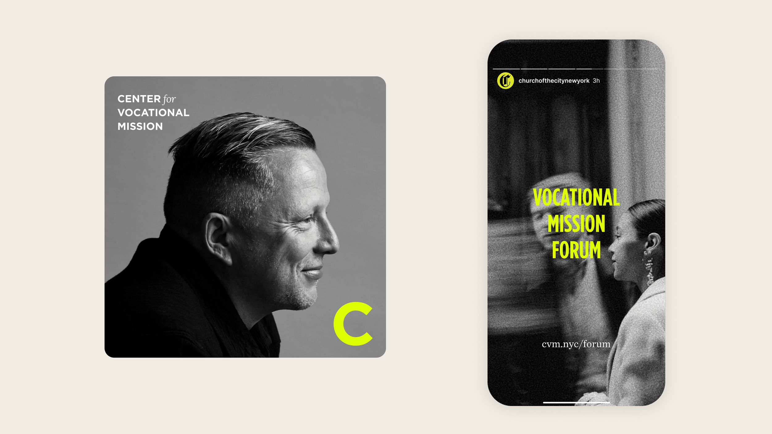 The Center for Vocational Mission is a new initiative from Church of the City New York. I partnered with the team to lead the brand and website launch designing the visual identity, core collateral, and a custom website to support the public launch.